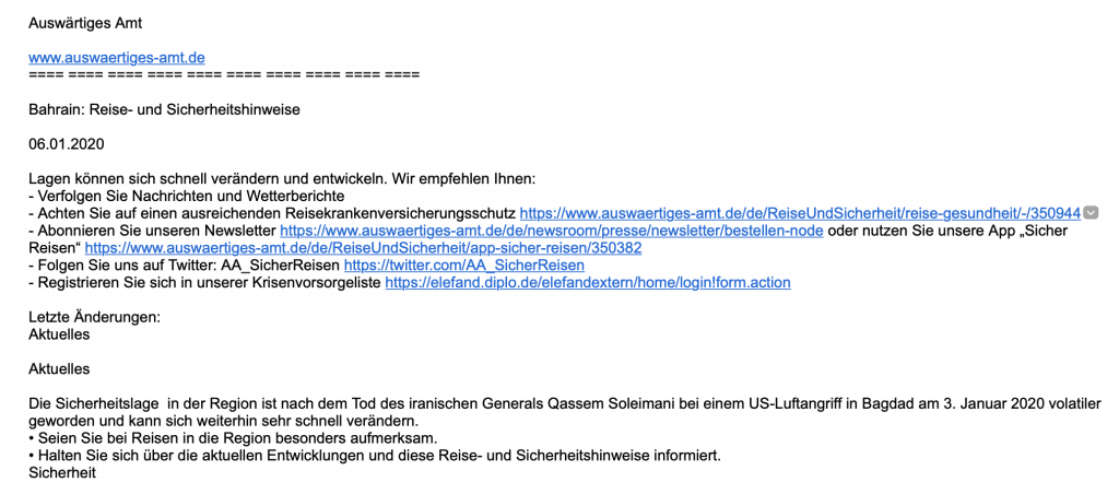 Nachtrag: So eine Sache wie der Abschuss der Ukranian Air in Tehran halte ich auch in Bahrain für möglich …