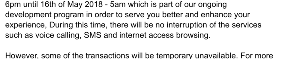 Alles klar? Batelco updatet sein Netzwerk. Das sollte die Kunden nicht stören, da es keine Unterbrechungen gibt. Weil aber einige Services nicht verfügbar sind, soll mann auf der Batelco Webseite nachgucken …
